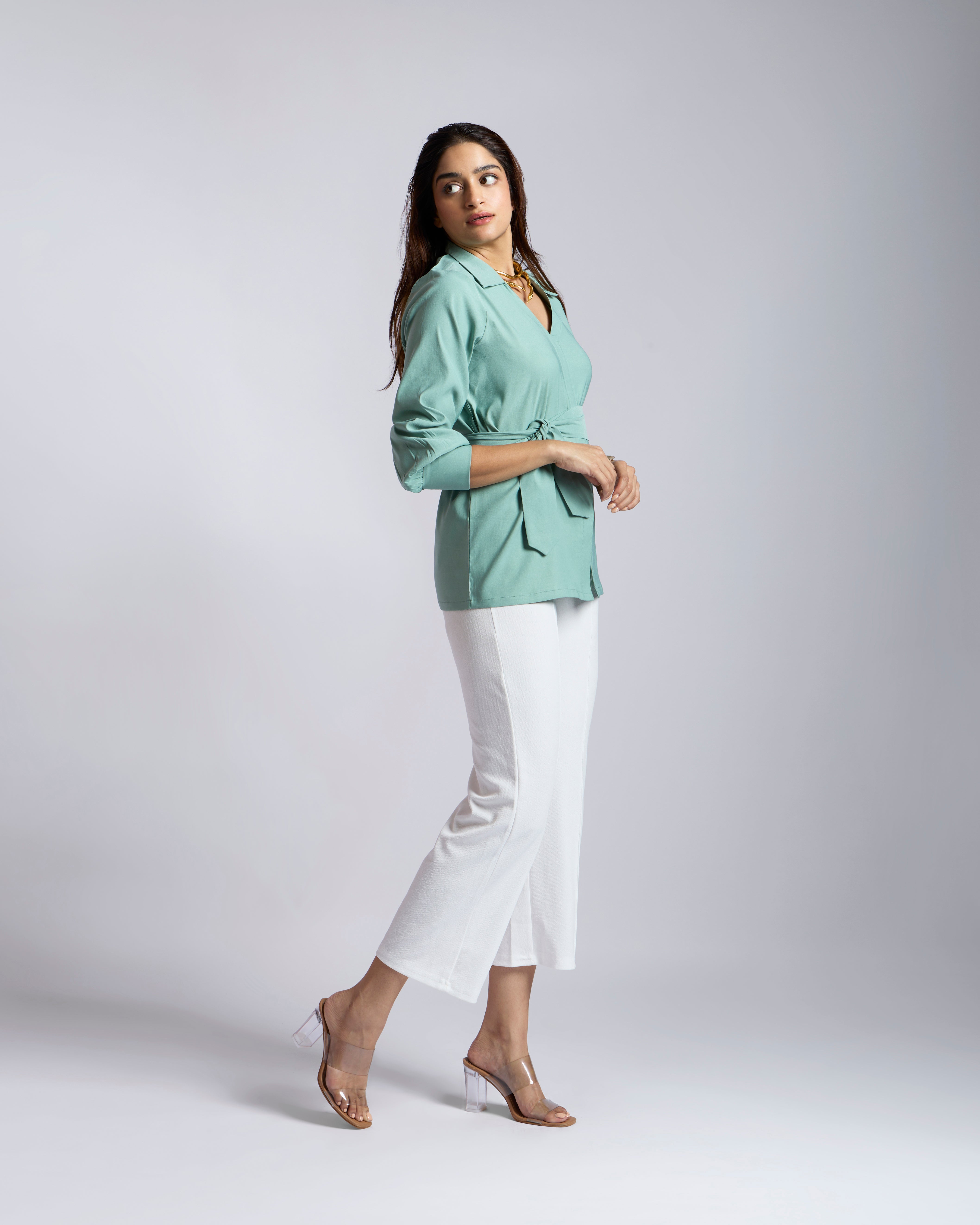 Back and better than ever, our Helena Belt Shirt delivers the expertly-tailored fit that made it a customer favorite, with a wider lapel and longer cuffs for a fresh, modern feel.