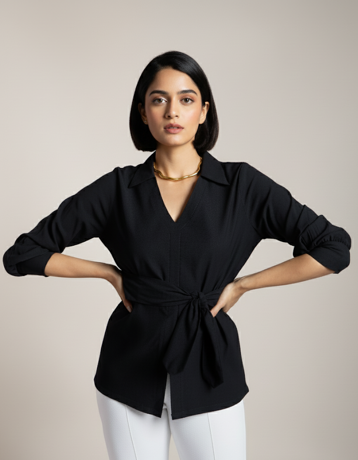 Back and better than ever, our Helena Belt Shirt delivers the expertly-tailored fit that made it a customer favorite, with a wider lapel and longer cuffs for a fresh, modern feel.