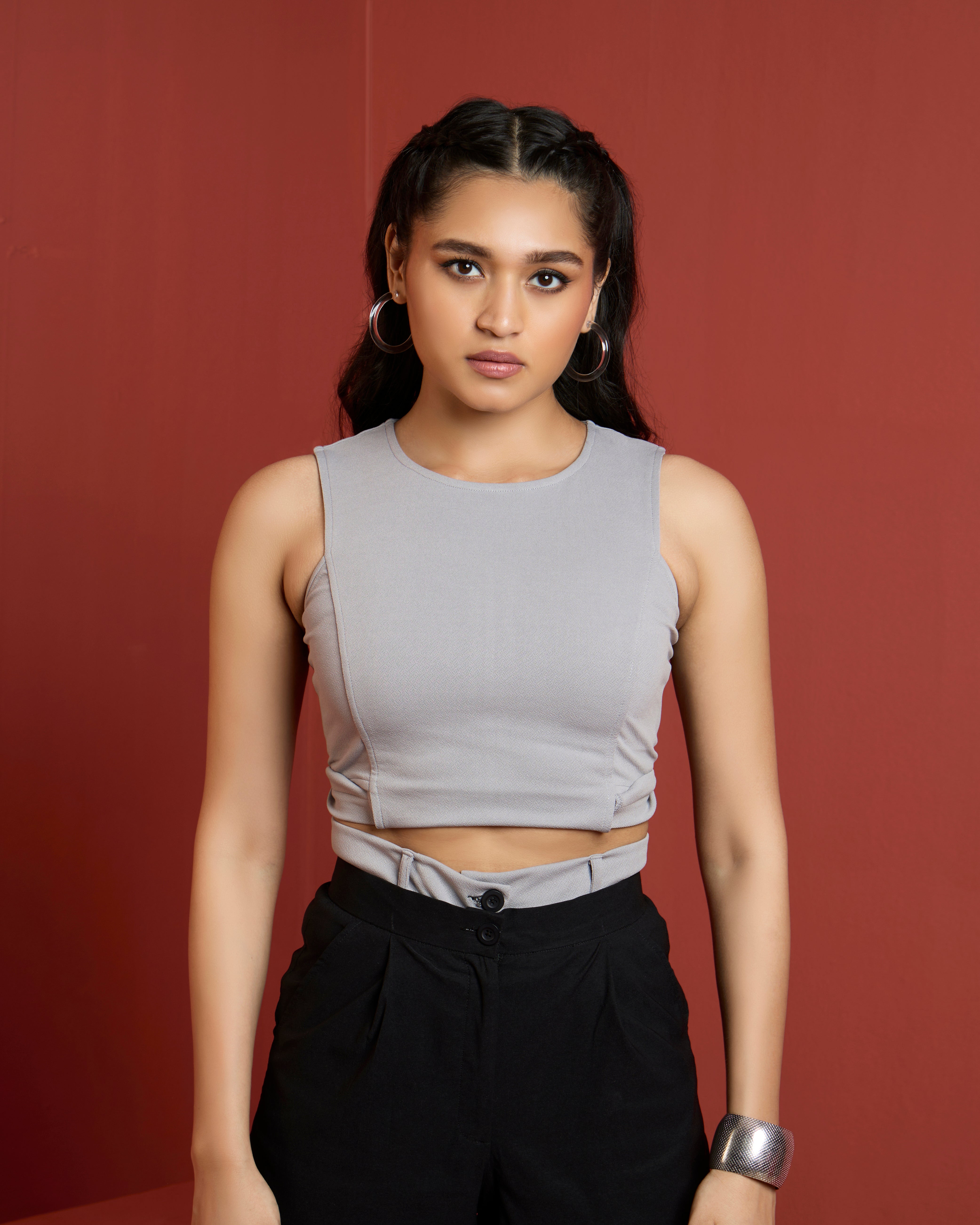 It's all in the name. This crop top exudes sophistication with a fitted silhouette crafted from our refined crepe fabric, a sumptuous blend and a touch of stretch to layer comfortably through the seasons.
